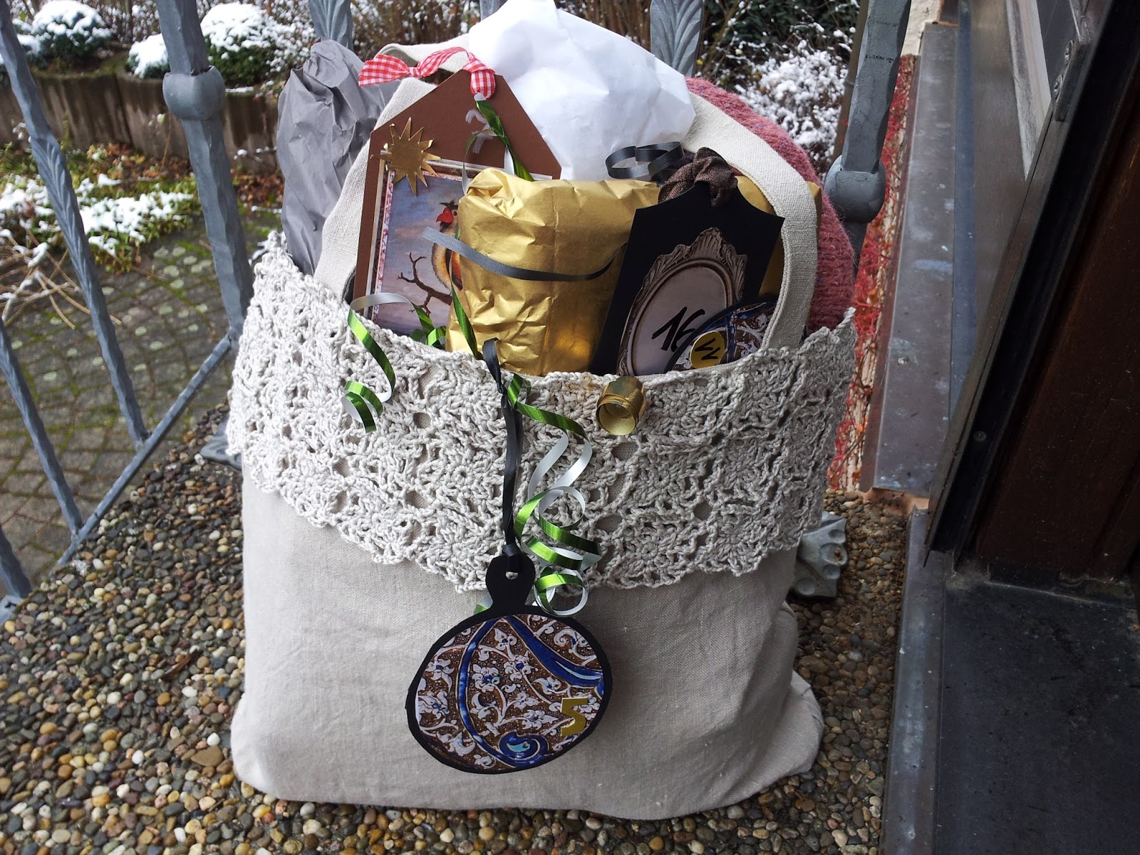 Aus dem Rest Leinen habe ich gleich noch ein Brotkörbchen genäht und dann behäkelt.